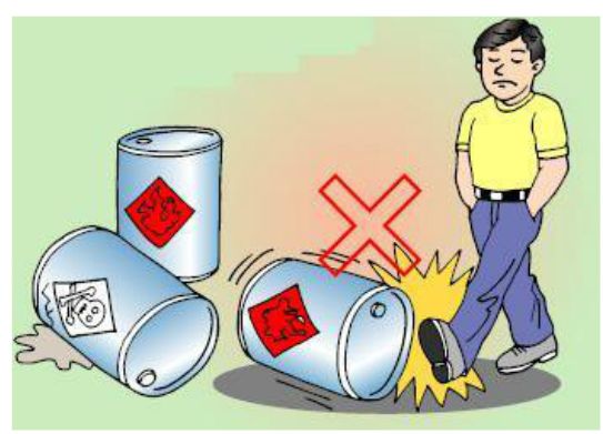 搬運危險化學品沒有輕裝輕卸;或者堆垛過高不穩,發生倒樁;或在庫內改裝打包,封焊修理等違反安全操作規程造成事故。
